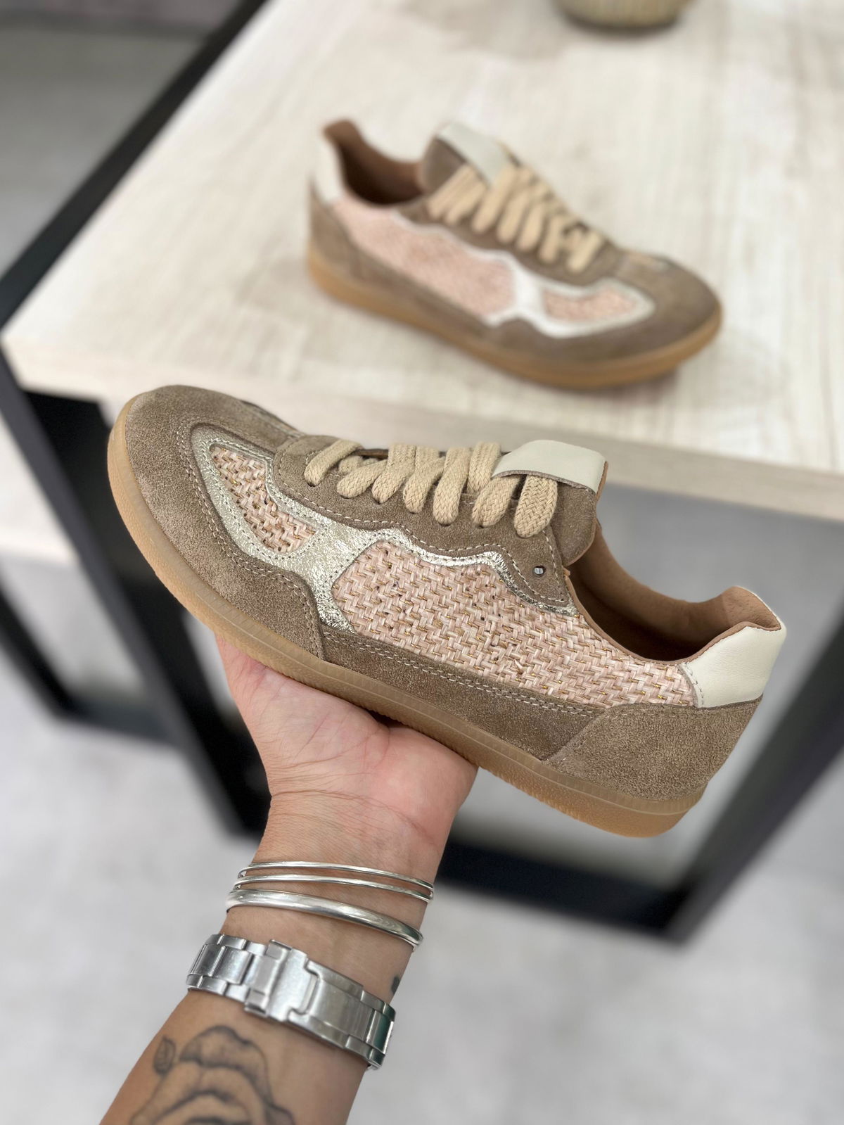 ● Diseño: Presentan un diseño de tiras entrelazadas.