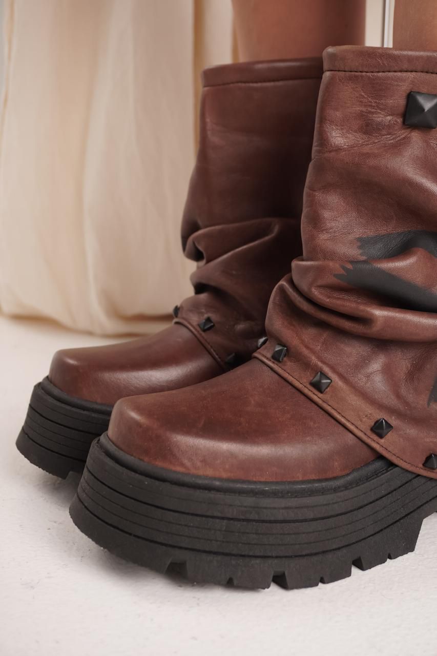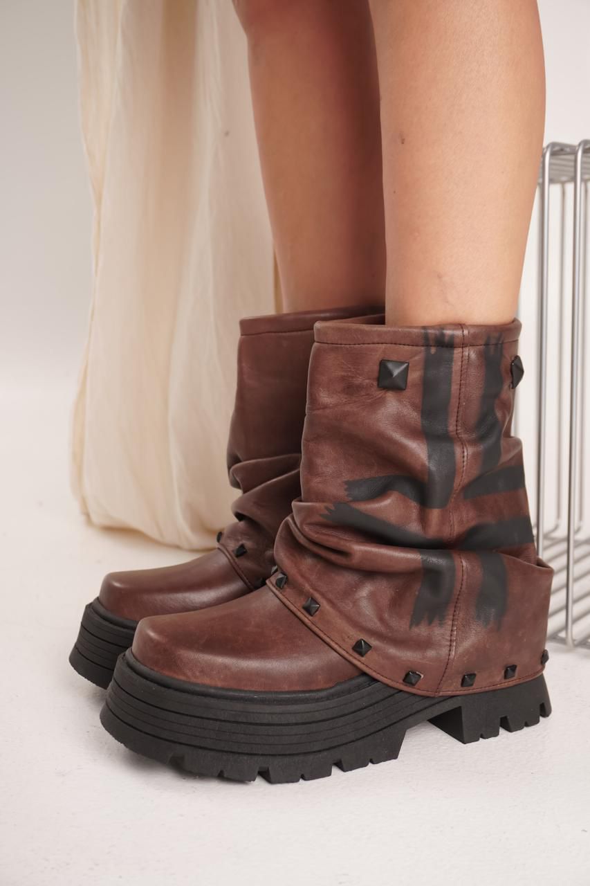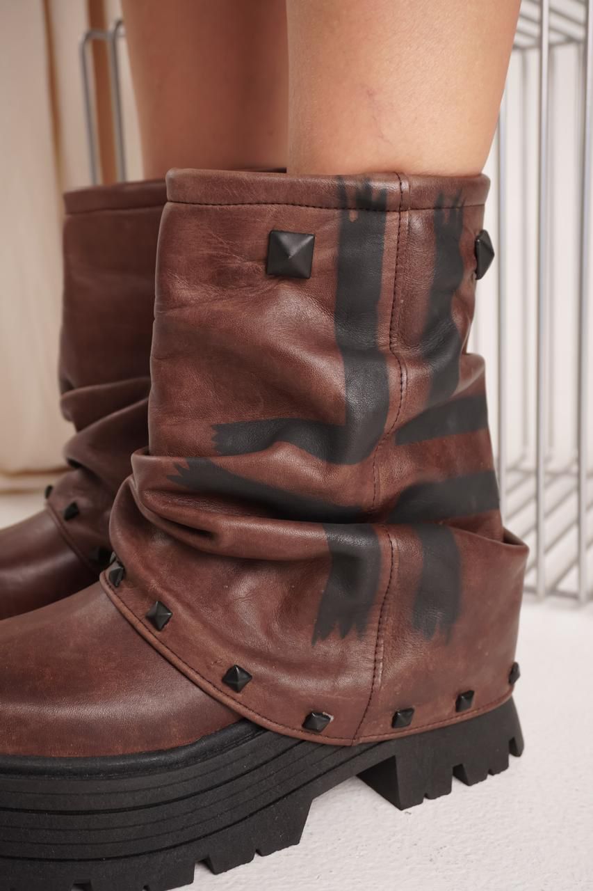 β’ Material: Cuero vacuno pintada a mano, cada par es ΓΊnica, con un acabado artΓstico que realza la nobleza del cuero y le da un carΓ‘cter irrepetible.