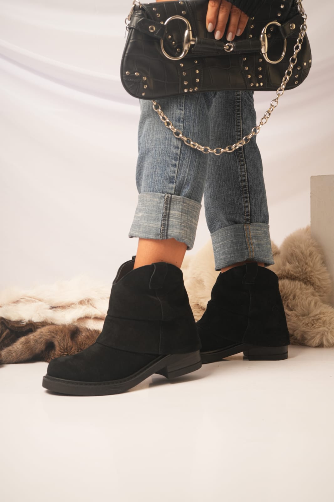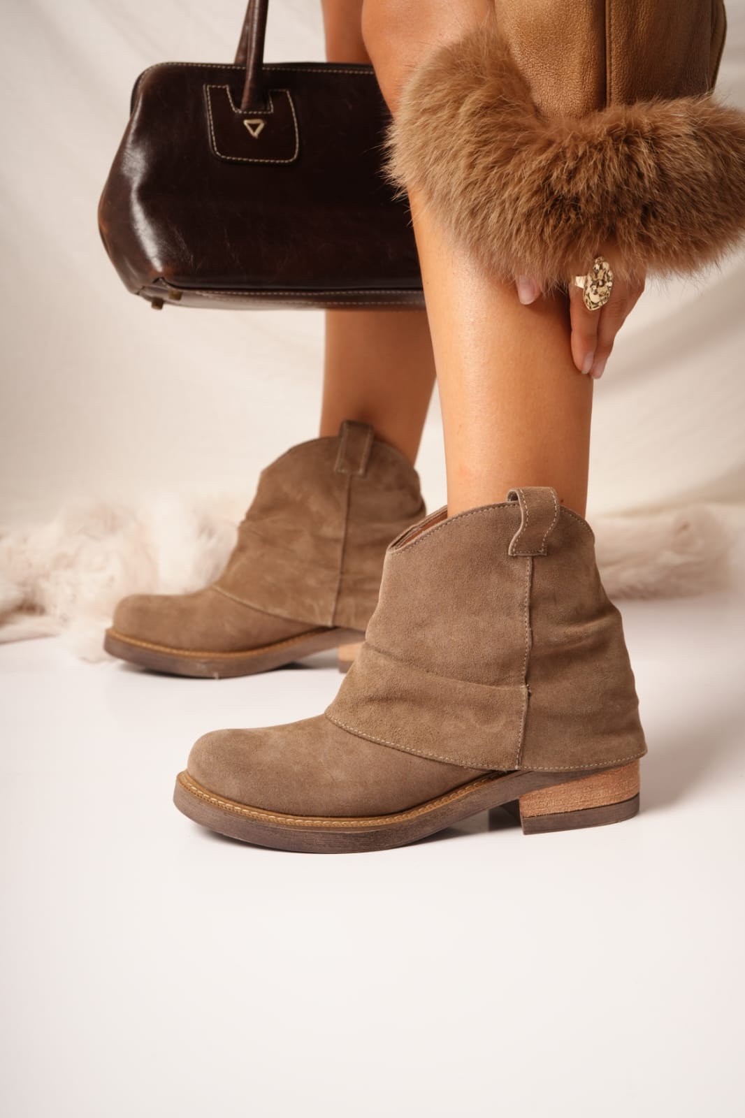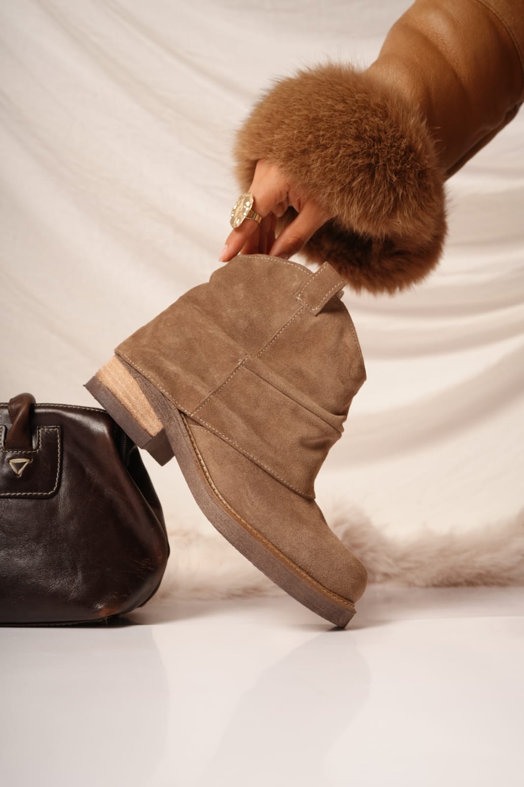 β’ Material: Cuero vacuno gamuzado.