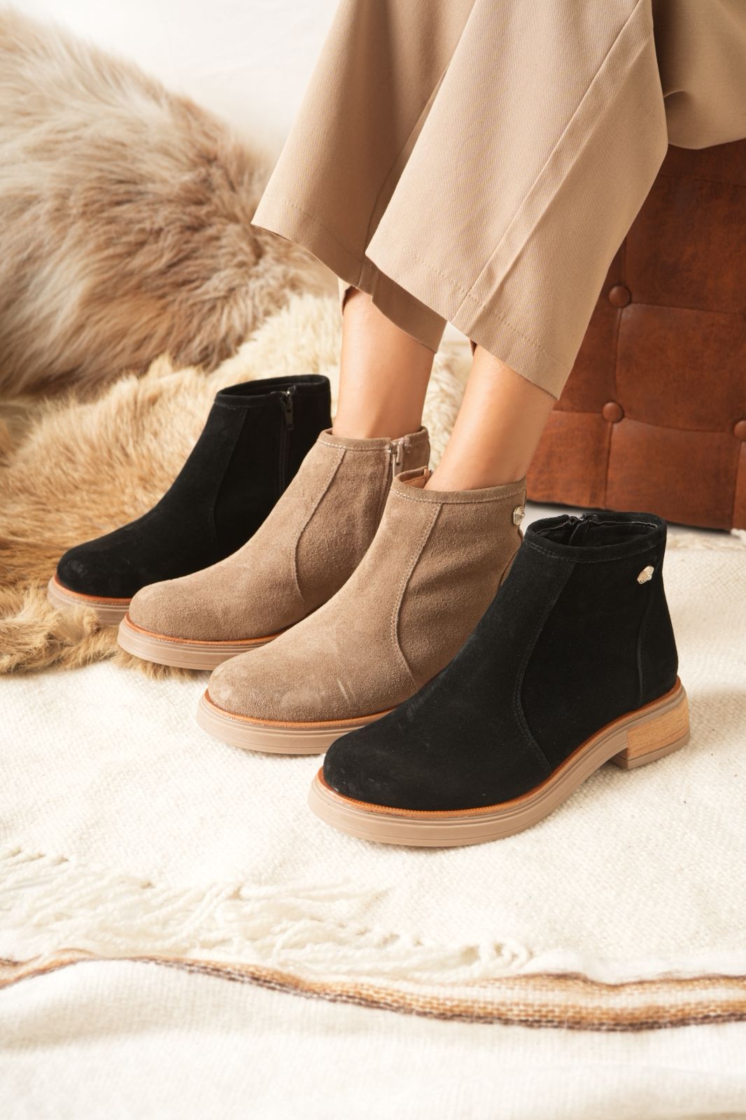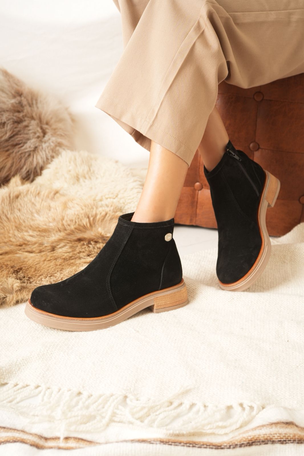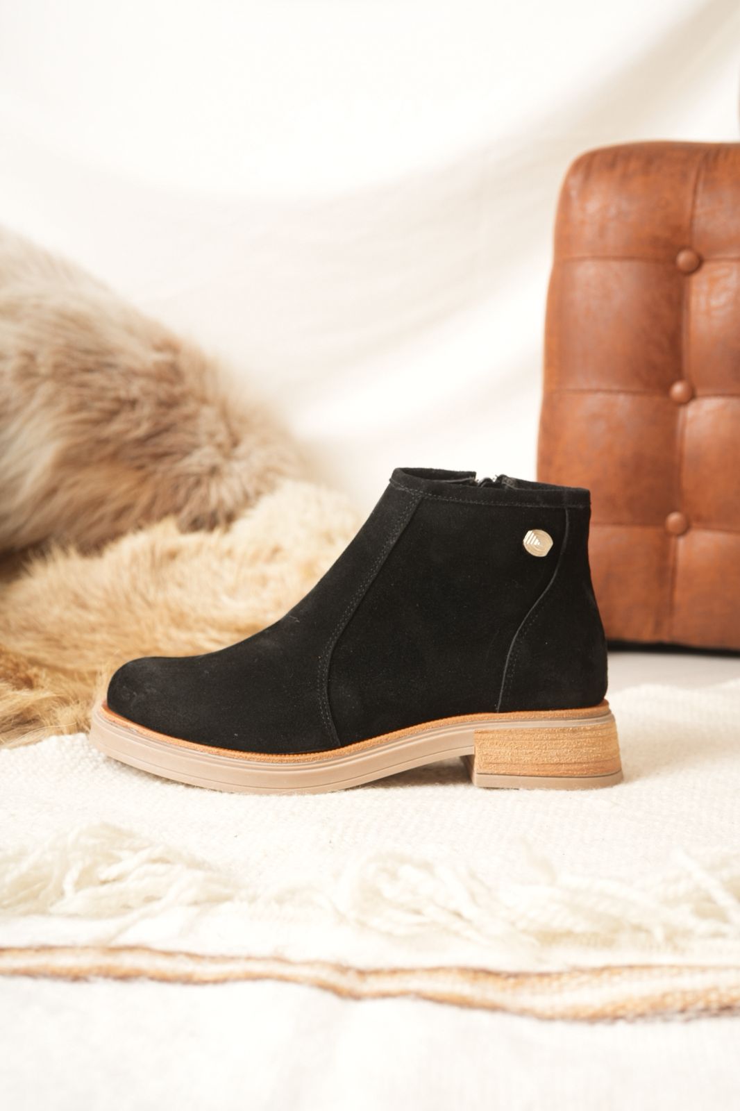 β’ Material: Cuero vacuno gamuzado.