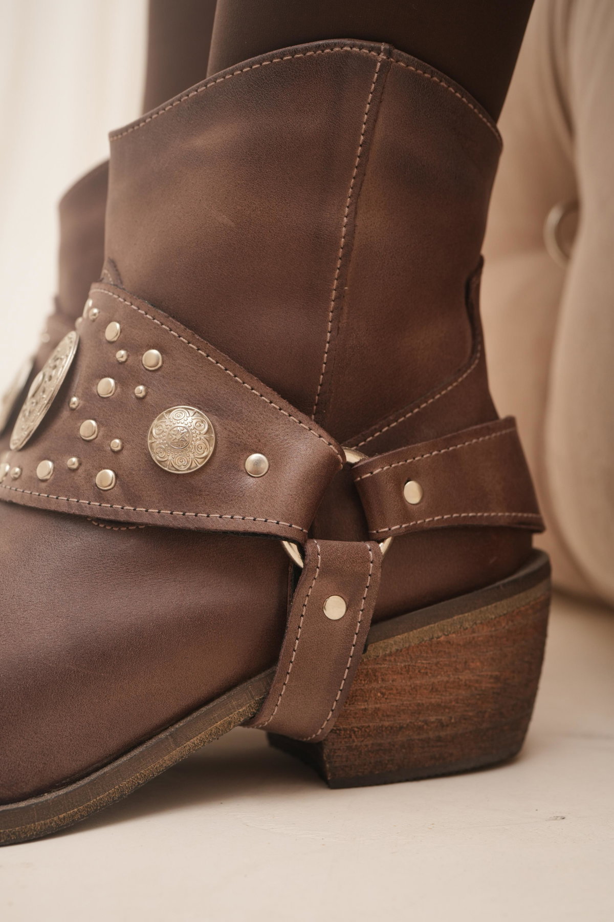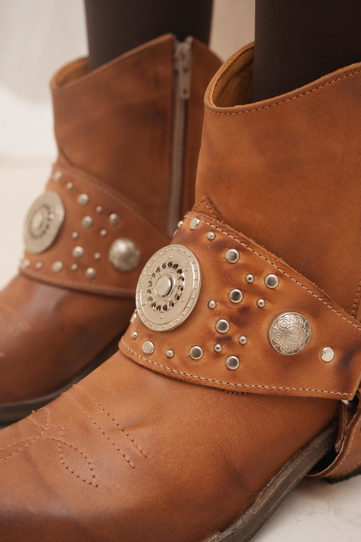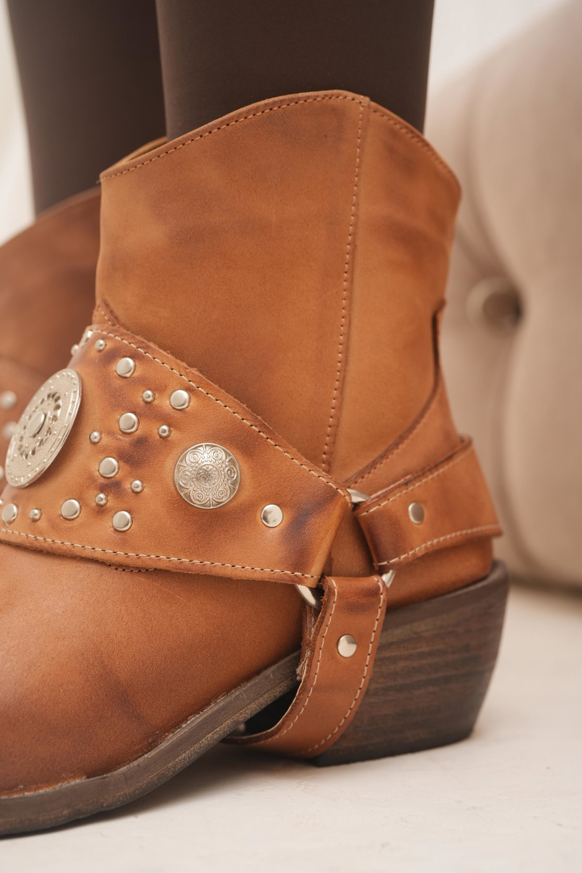 DETALLE: Estribo desmontable, tachas, apliques metálicos (Zamak).