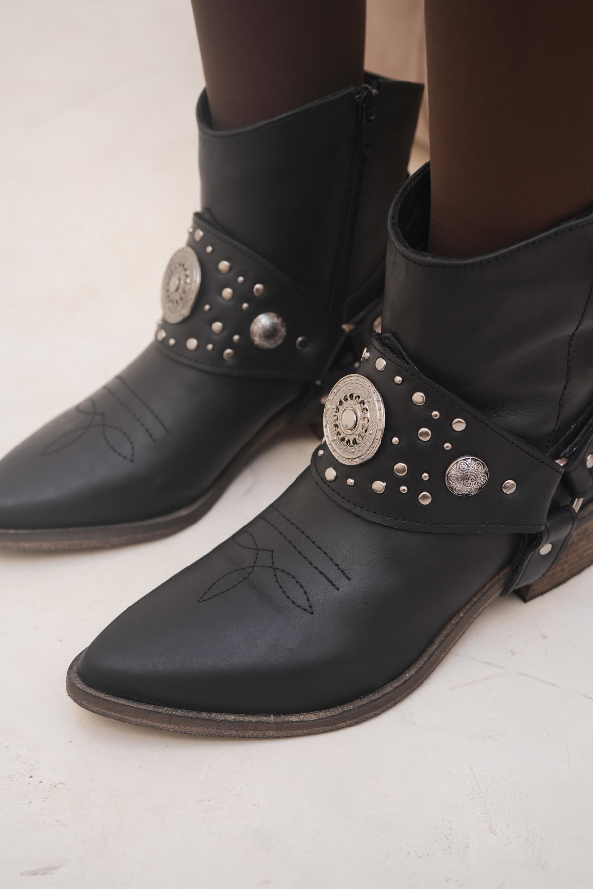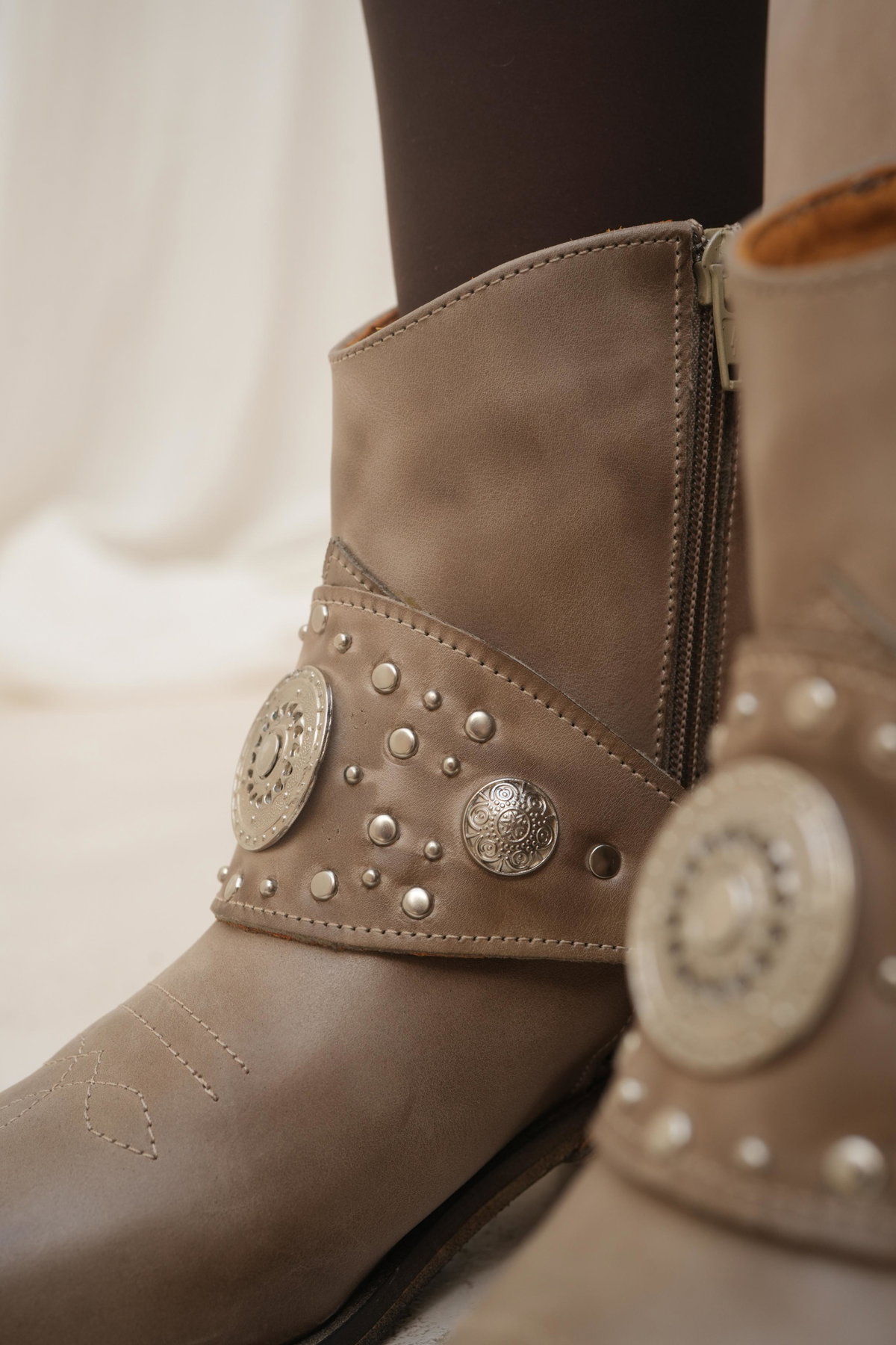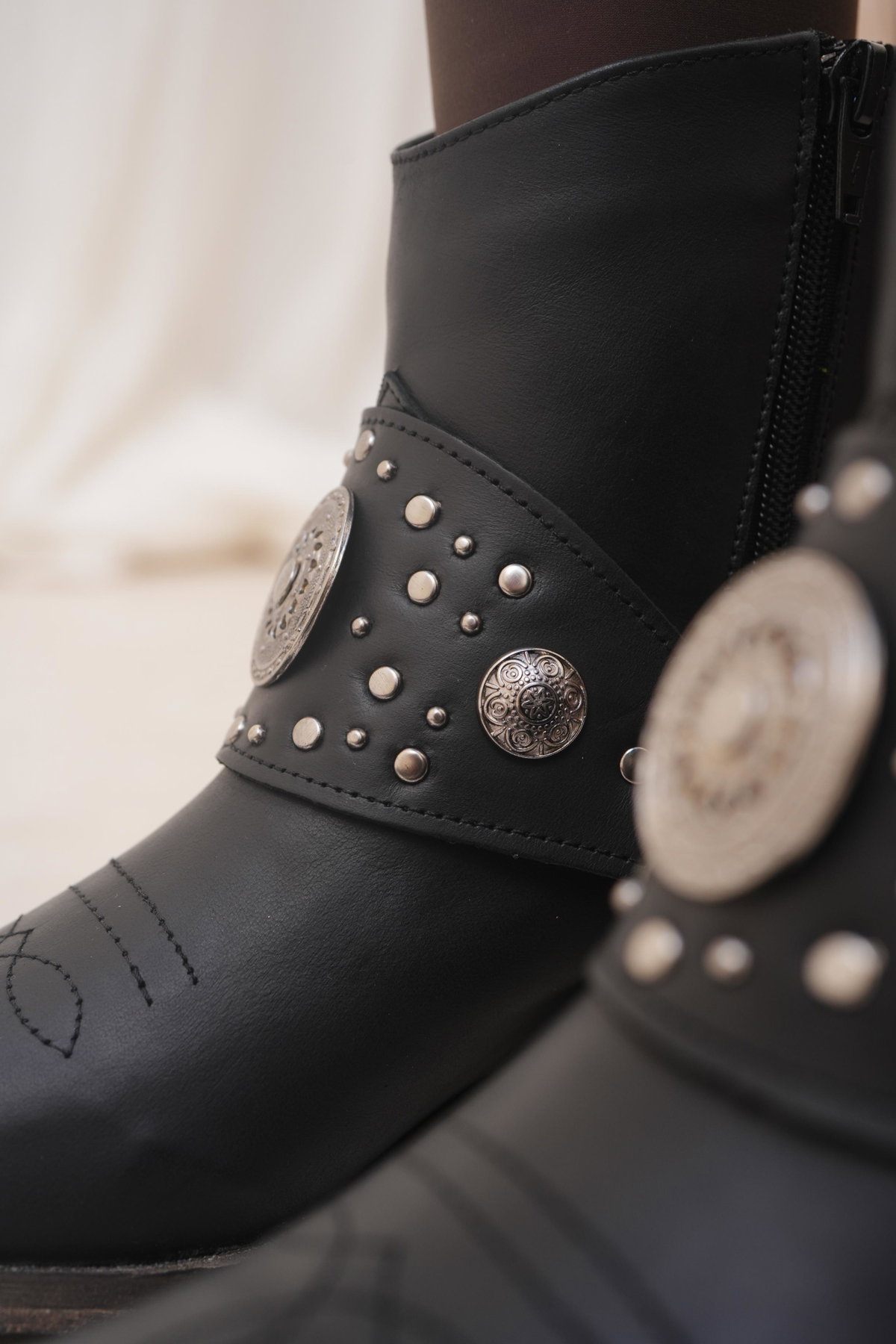 DETALLE: Estribo desmontable, tachas, apliques metálicos (Zamak).