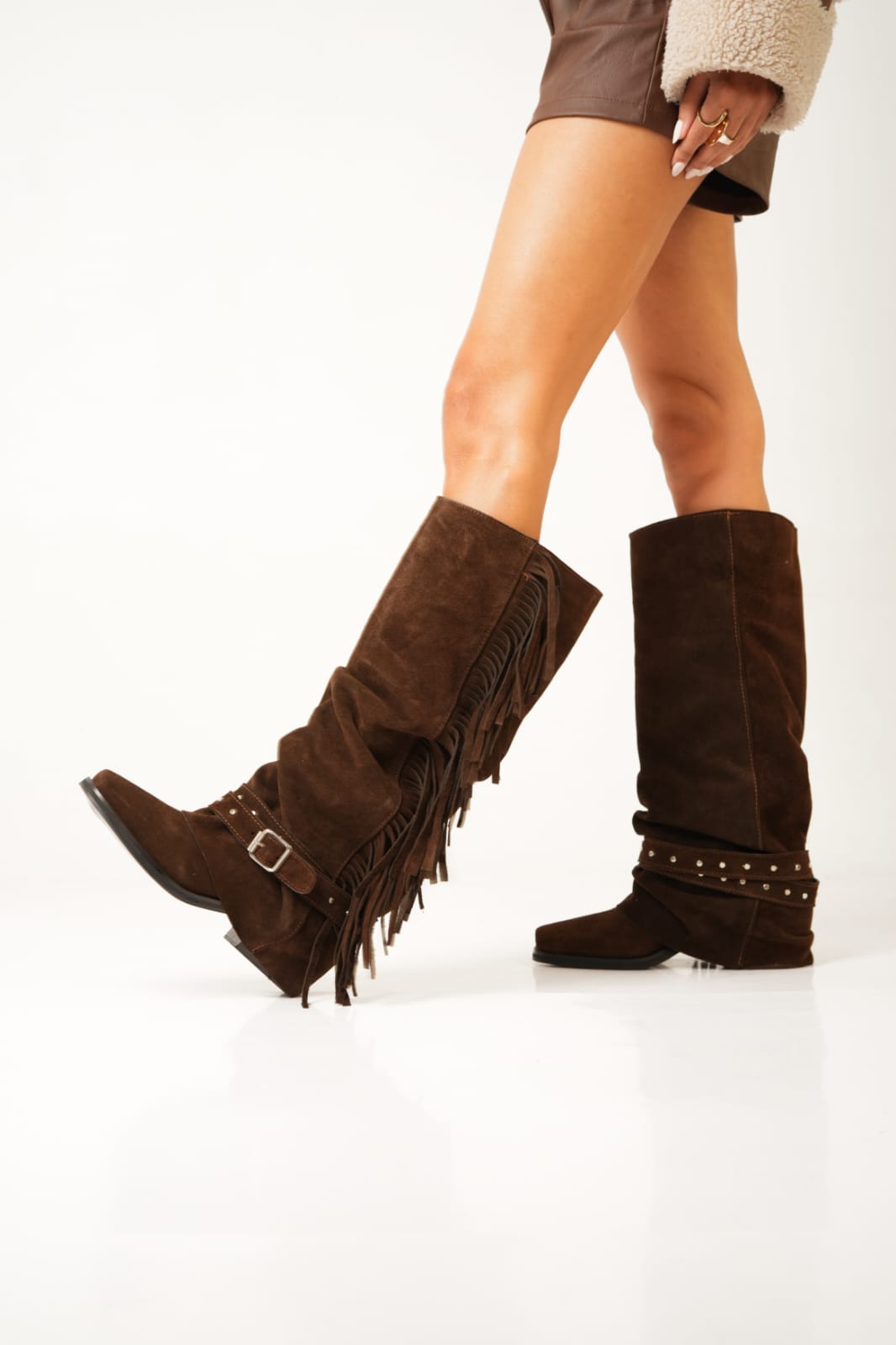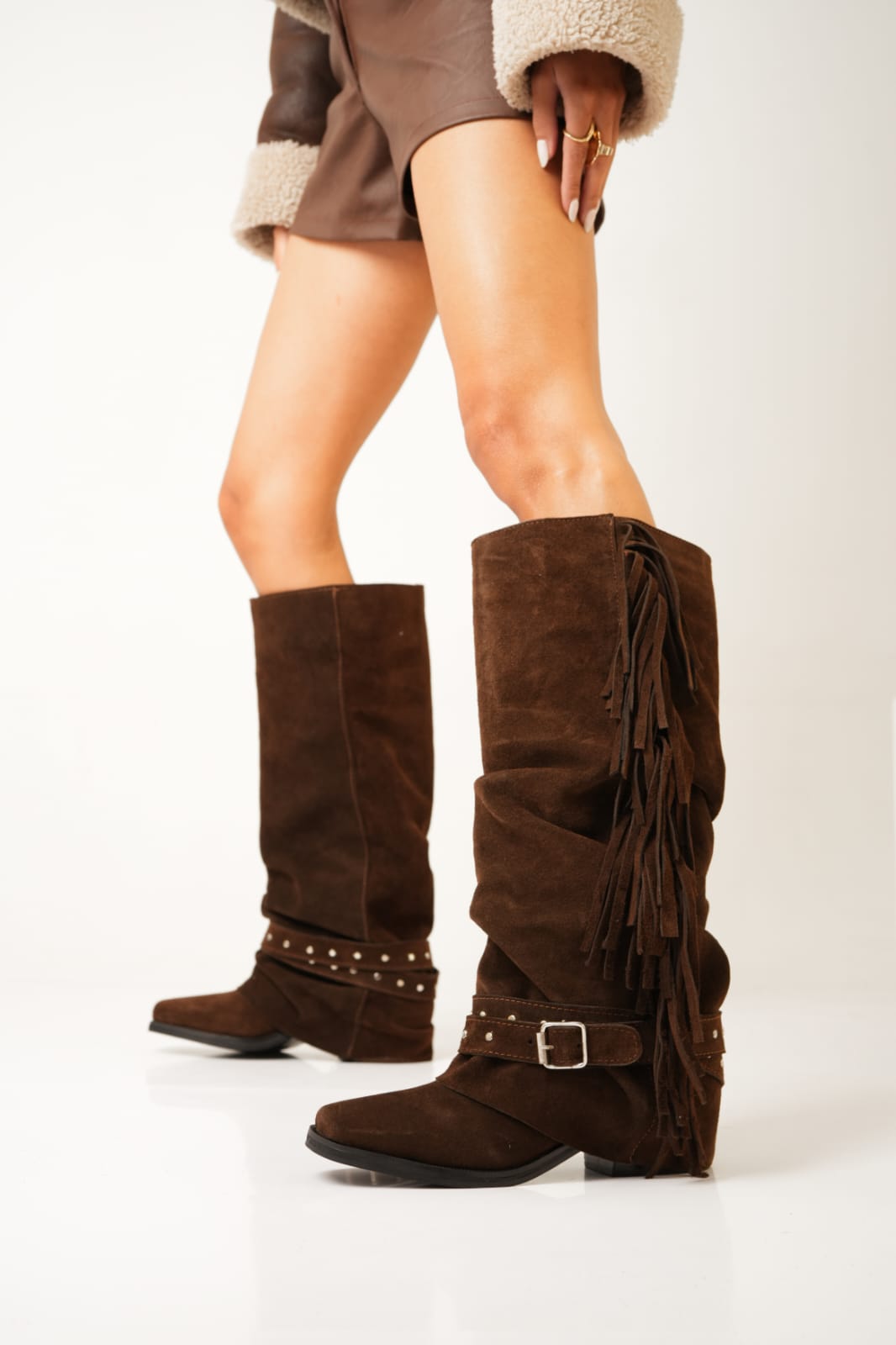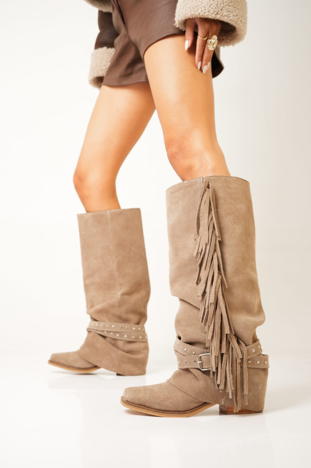 MATERIAL: Cuero vacuno gamuzado.