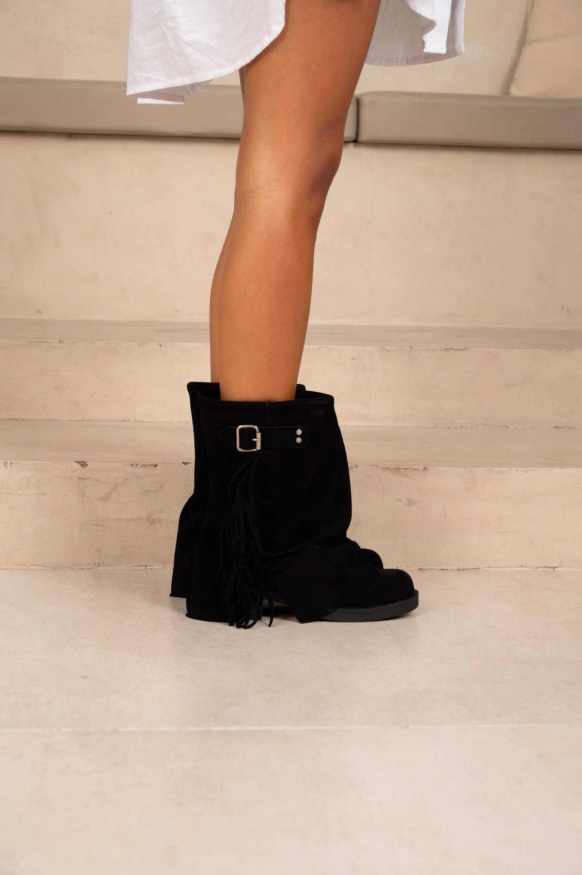 β’ Material: La capellada estΓ‘ confeccionada en cuero vacuno gamuzado.
