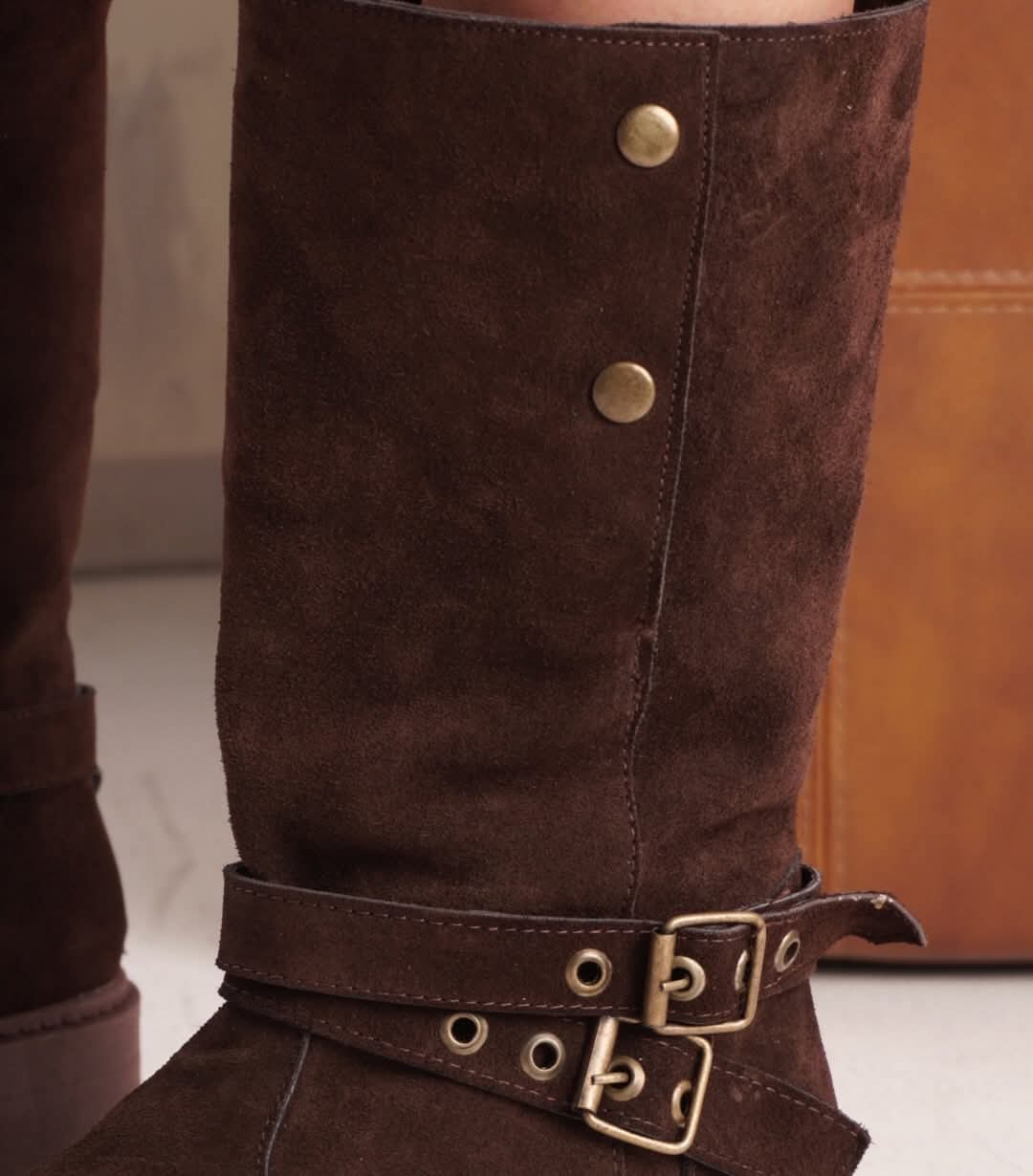 β’ Material: Cuero vacuno gamuzado.