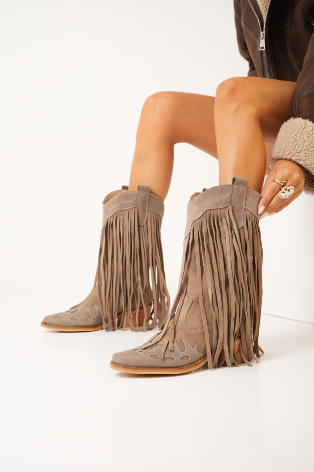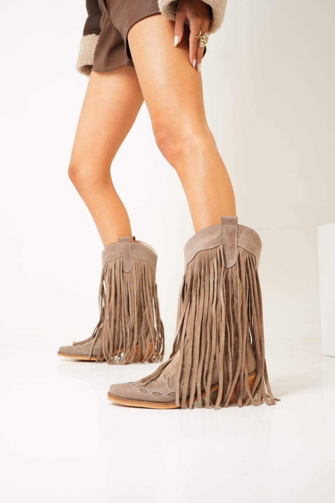 MATERIAL: Cuero vacuno gamuzado.