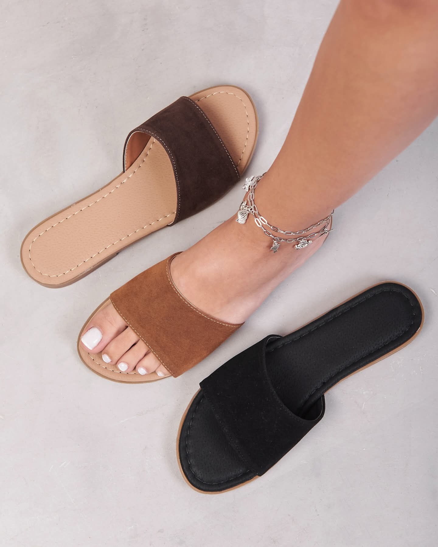 Estas sandalias FLATS de eco cuero gamuzado están diseñadas especialmente para vos que buscás un modelo en tendencia que combine con todos tus OUTFITS.