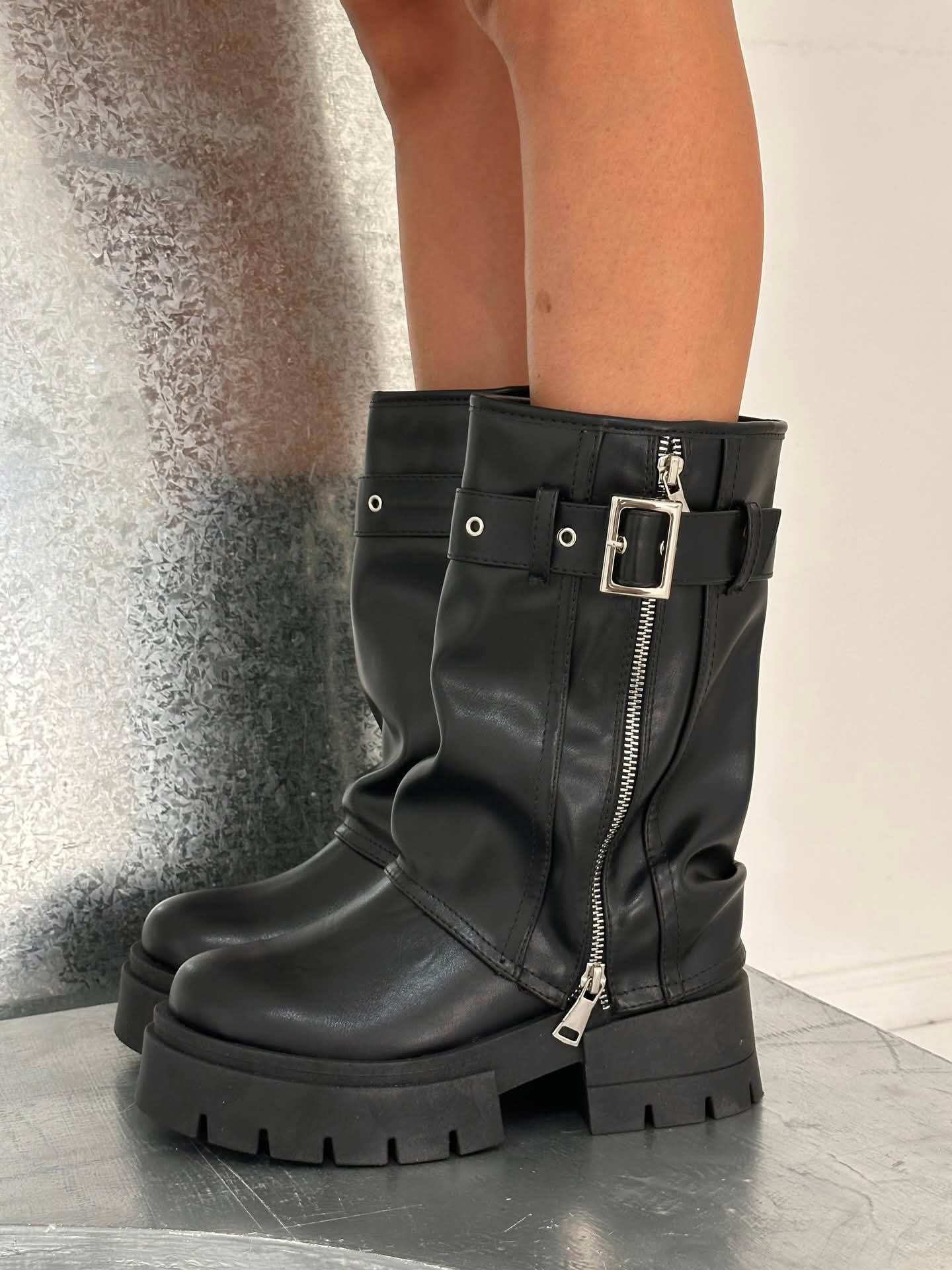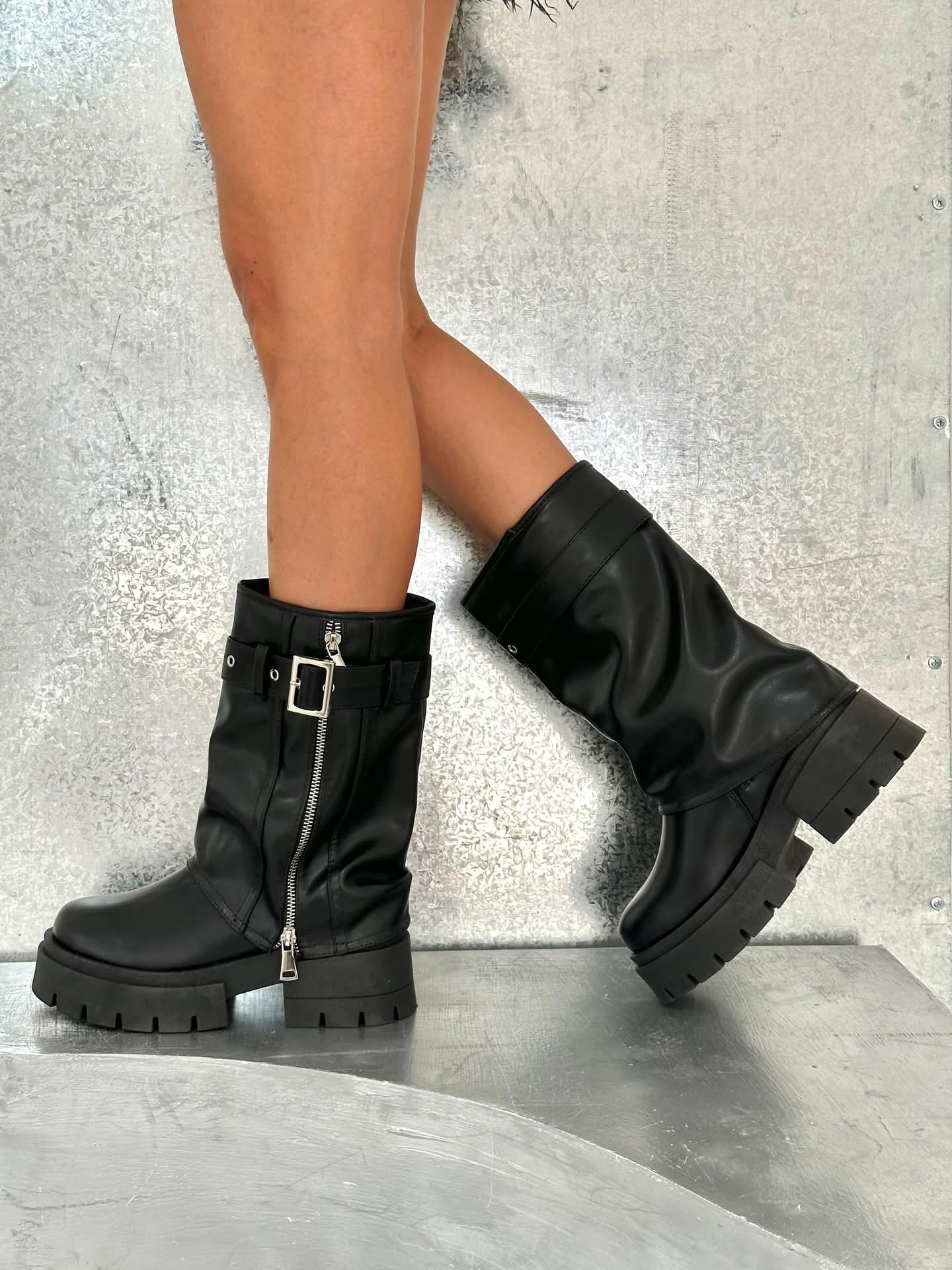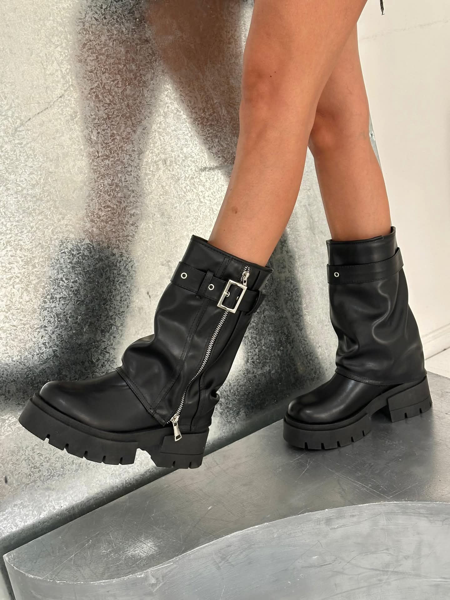 Diseño de caña media, cierre lateral súper práctico y hebilla metálica que le suma carácter.
