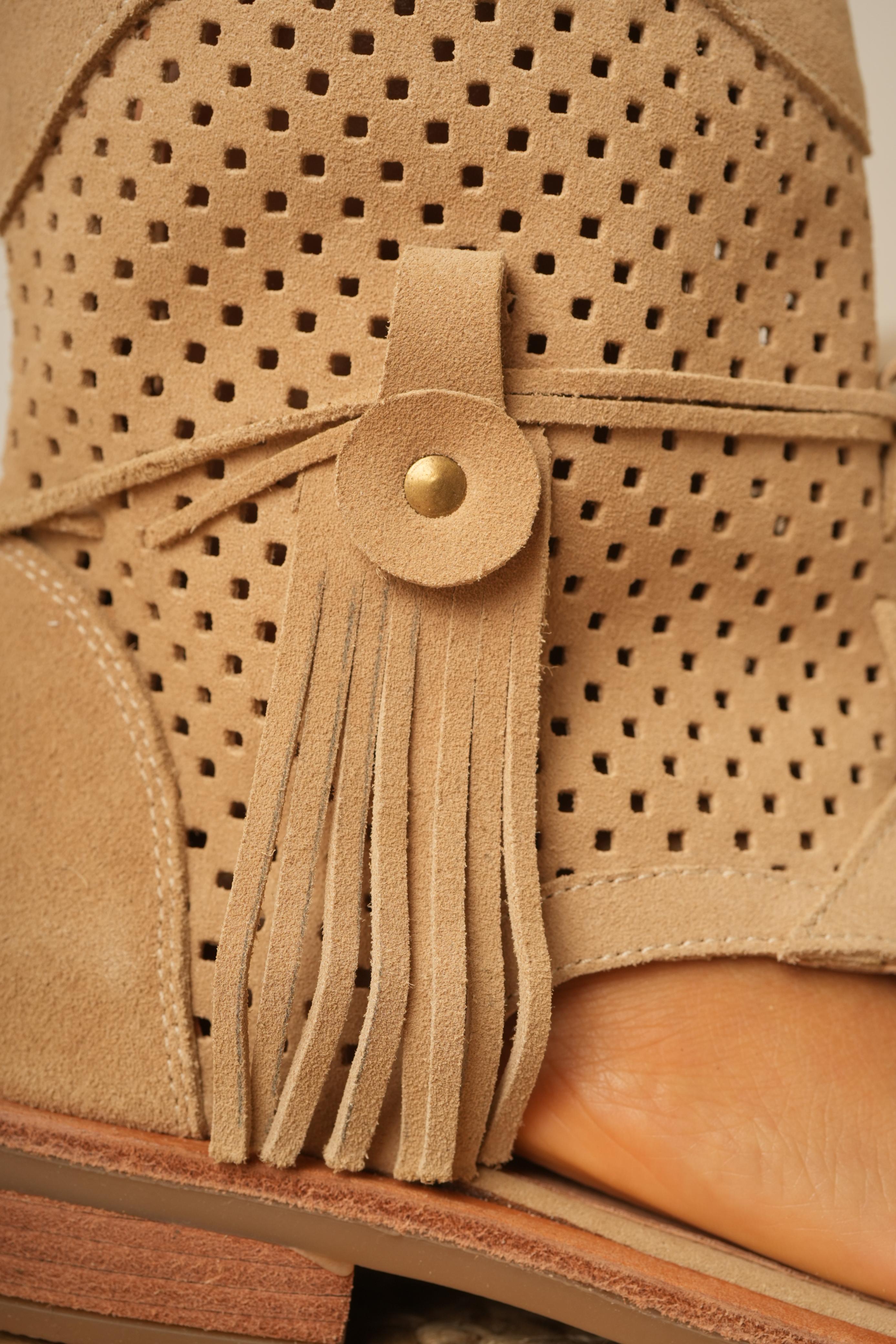 ● MATERIAL: Cuero vacuno gamuzado picado. ESTILO BOHO CHIC.